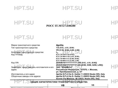 | Предприятие-изготовитель | Aprilia S.P.A Via G. Galilei 1 I-30033 Noale (VE), Italy |