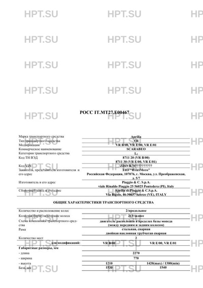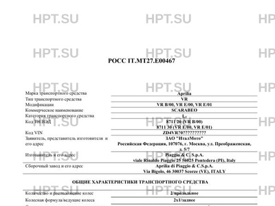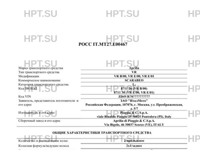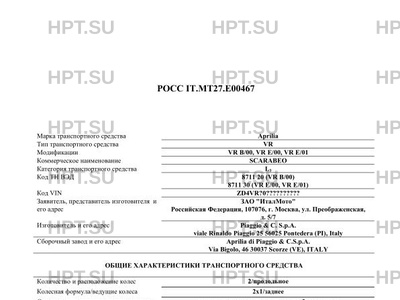 | Предприятие-изготовитель | Piaggio & C. S.p.A. viale Rinaldo Piaggio 25 56025 Pontedera (PI), Italy |