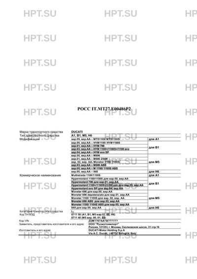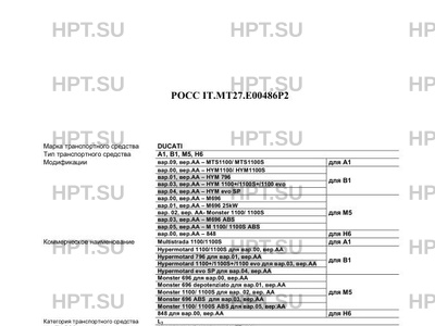 | Коммерческое наименование | Multistrada 1100/1100S для A1 Hypermotard 1100/1100S для вар.00, вер.АА для В1 … |