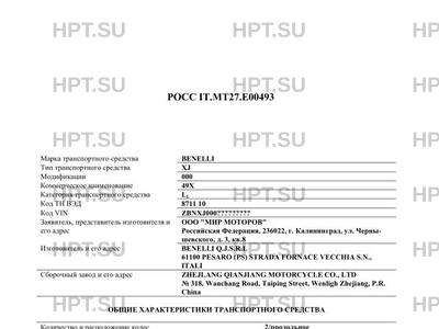 | Марка ТС | BENELLI |