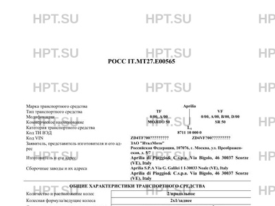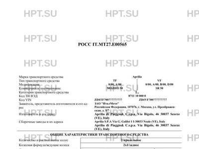 | Код VIN | ZD4TF?00????????? (TF), ZD4VF?00????????? (VF) |