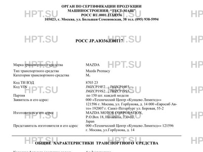 | Код VIN | JMZCP19F2..., JMZCP19F5..., JMZCP19S2..., JMZCP19S5…. Партия по 150 шт. каждой … |