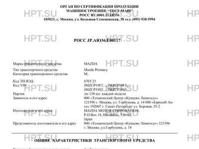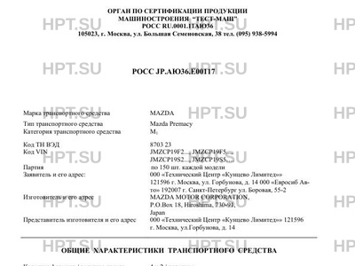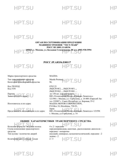 | Тип ТС | Mazda Premacy |