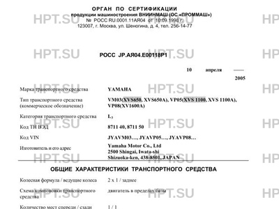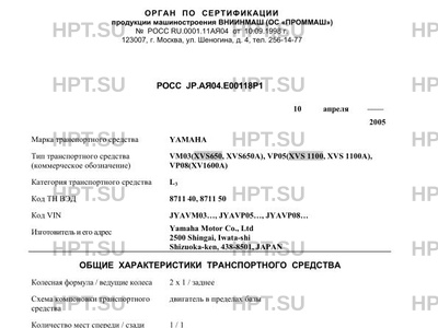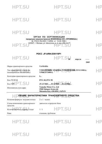 | Тип ТС | (коммерческое обозначение) VM03(XVS650, XVS650A), VP05(XVS 1100, XVS 1100A), VP… |