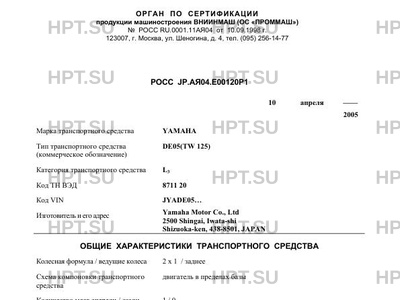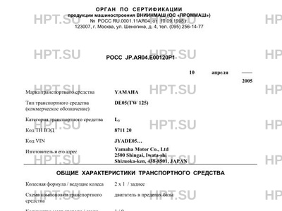 | Марка ТС | YAMAHA |