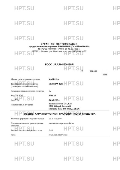 | Тип ТС | (коммерческое обозначение) DE05(TW 125) |