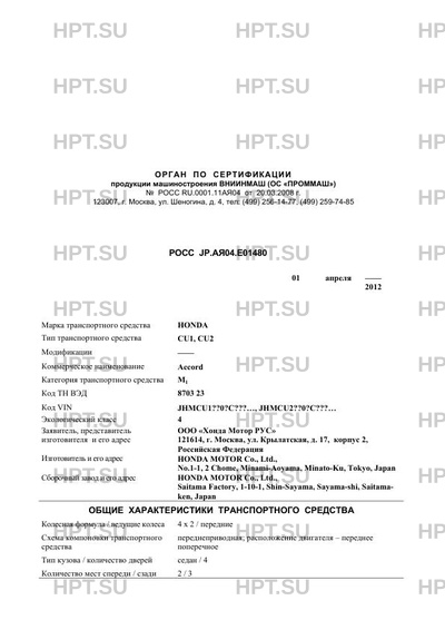 | Предприятие-изготовитель | HONDA MOTOR Co., Ltd., No.1-1, 2 Chome, Minami-Aoyama, Minato-Ku, Tokyo, Japan |