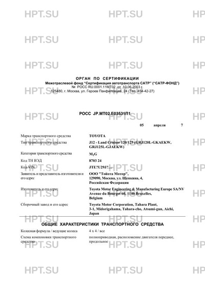 | Тип ТС | J12 - Land Cruiser 120/125 (GRJ120L-GKAEKW, GRJ125L-GJAEKW) |