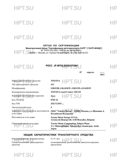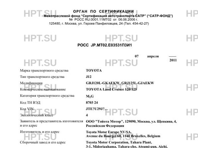 | Коммерческое наименование | J12 (GRJ120L-GKAEKW, GRJ125L-GJAEKW_ TOYOTA Land Cruiser 120/125 |
