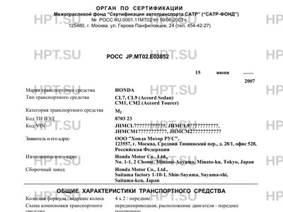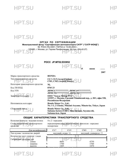| Тип ТС | CL7, CL9 (Accord Sedan) CM1, CM2 (Accord Tourer) |