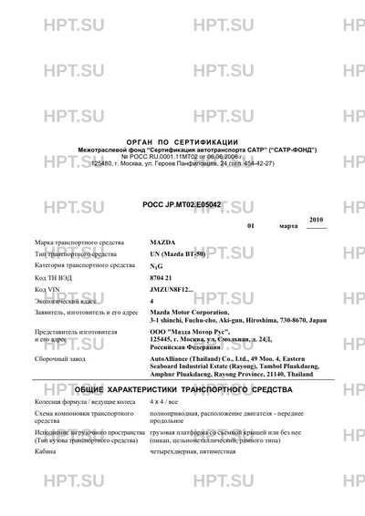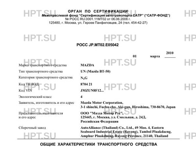| Оборудование ТС | электообогрев наружных зеркал заднего вида, электрические стеклоподъемники, кондиционер (хладагент R134a), противоугонное устройство MAZDA UN (Mazda BT-50) |