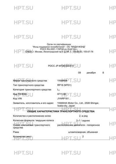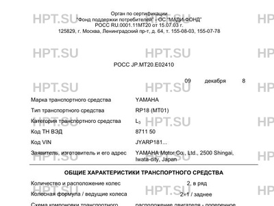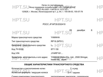 | Оборудование ТС | зеркала заднего вида, звуковой сигнал YAMAHA RP18 (МТ01) |