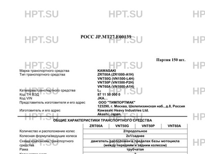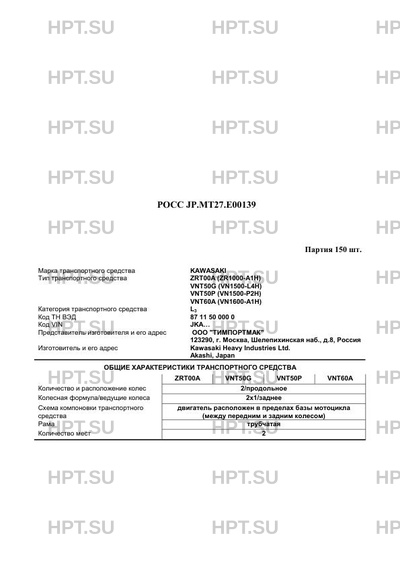 | Тип ТС | ZRT00A (ZR1000-A1H) VNT50G (VN1500-L4H) VNT50P (VN1500-P2H) VNT60A (VN1600-A1H) |