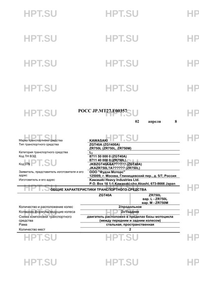 | Марка ТС | KAWASAKI |