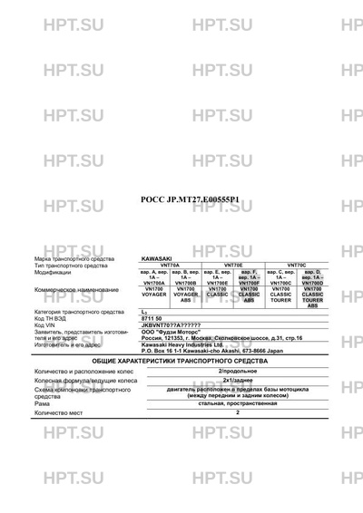 Коммерческое наименование VN1700 VOYAGER VN1700 VOYAGER ABS VN1700 CLASSIC VN1700 CLASSIC ABS VN1700 CLAS…