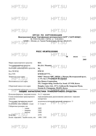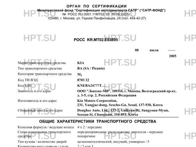 Предприятие-изготовитель Kia Motors Corporation, 231, Yangjae-dong, Seocho-Gu, Seoul, 137-938, Korea