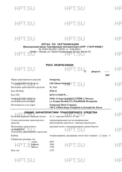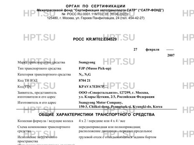 | Тип ТС | FJP (Musso Pick-up) |