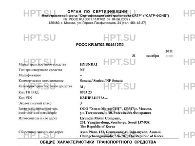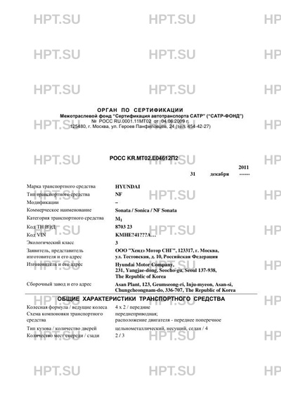 | Тип ТС | NF Sonata / Sonica / NF Sonata |