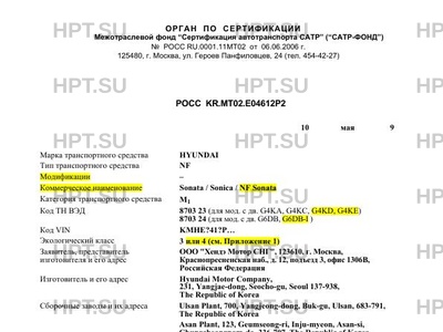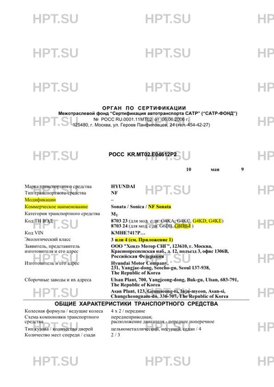 | Код ТН ВЭД | 8703 23 (для мод. с дв. G4KA, G4KC, G4KD, G4KE) 8703 24 (для мод. с дв. G6DB, G6DB-I ) |