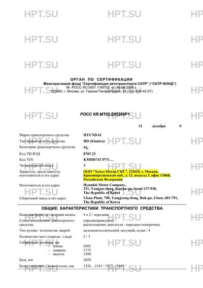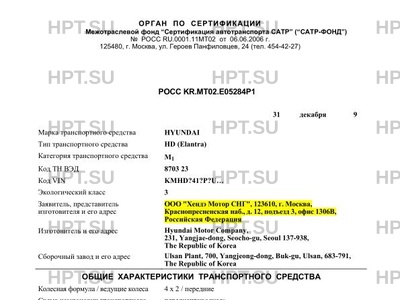 | Оборудование ТС | кондиционер (хладагент R134a), подушки безопасности, электрообогреватель наружных зеркал заднего вида, электрические стеклоподъемники HYUNDAI HD (Elantra) |