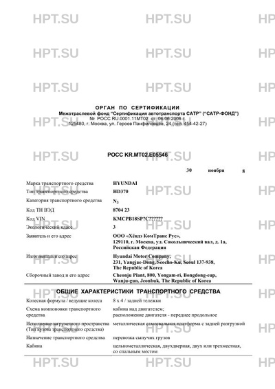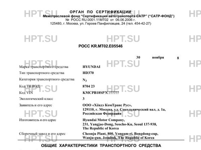 | Заявитель | ООО "Хёндэ КомТранс Рус", 129110, г. Москва, ул. Сокольнический вал, д. 1а, Российская Федерация |