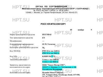 | Марка ТС | HYUNDAI |