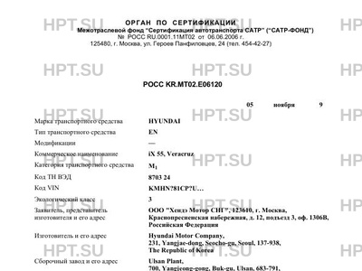 | Предприятие-изготовитель | Hyundai Motor Company, 231, Yangjae-dong, Seocho-gu, Seoul, 137-938, The Republic of Korea Ulsan Plant, 700, Yangjeong-gong, Buk-gu, Ulsan, 683-791, The Republic of Korea |