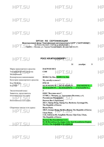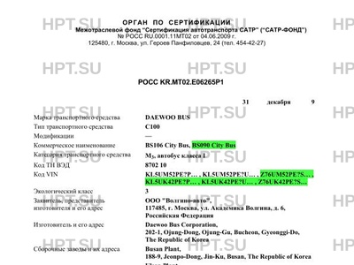 | Марка ТС | DAEWOO BUS |