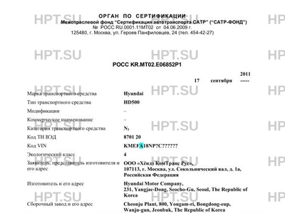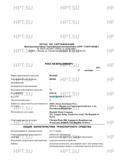 | Заявитель | ООО "Хёндэ КомТранс Рус", 107113, г. Москва, ул. Сокольнический вал, д. 1а, Российская Федерация |