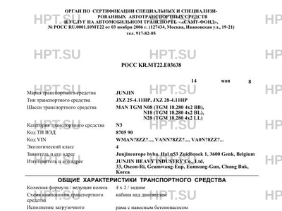 Коммерческое наименование JXZ 25-4.11HP, JXZ 28-4.11HP на шасси MAN TGM N08 (TGM 18.280 4x2 BB), N18 (TGM…