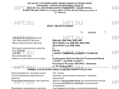 | Тип ТС | ЗПВ-600, ЗПВ-1000, ЗПВ-1600 |