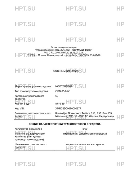 | Марка ТС | NOOTEBOOM |