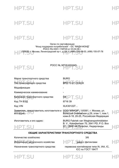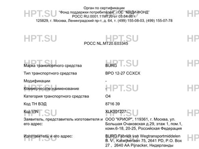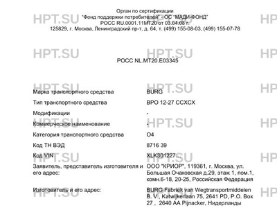 | Марка ТС | BURG |