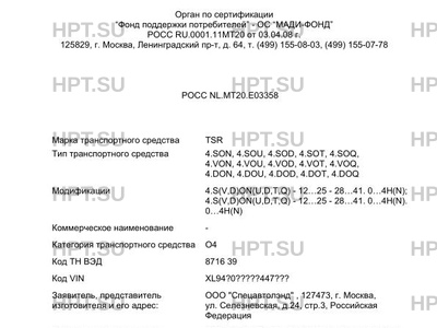Тип ТС 4.SON, 4.SOU, 4.SOD, 4.SOT, 4.SOQ,4.VON, 4.VOU, 4.VOD, 4.VOT, 4.VOQ,4.DON, 4.DOU, 4.DOD, 4.DOT, 4.DOQ