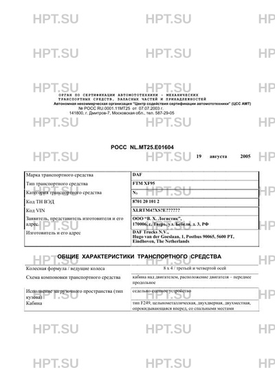 | Марка ТС | DAF |