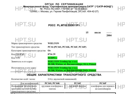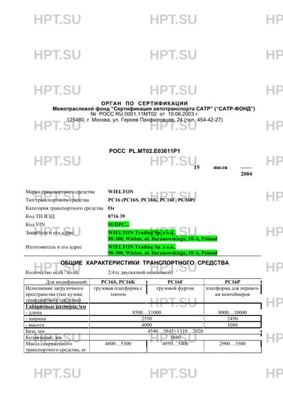 | Тип ТС | PC16 (PC16S, PC16K, PC16F, PC16P) |