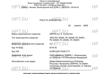 | Марка ТС | ZEPPiA inz. S. Cymerman |