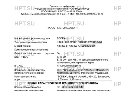 Исполнение загрузочного пространства платформа с бортами или без них, с передним высоким бортом и задними воротами или без них, с каркасом и тентом или без них (KIS 3K- шторный; KIS 3P-тентованный), консоли с фитингами для крепления контейнеров по ГОСТ 18477 типа IA, IAA, IC, ICC (KIS 3KO), самосвальный кузов с задней разгрузкой, с шиберной задвижкой для полуприцепа сельскохозяйственного назначения для перевозки зерна (KIS 3W) низкорамная платформа - KIS 3JM 2