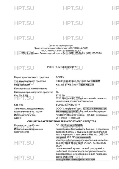 Тип ТС KIS 3K;KIS 3P;KIS 3KO;KIS 3W;KIS 3JM