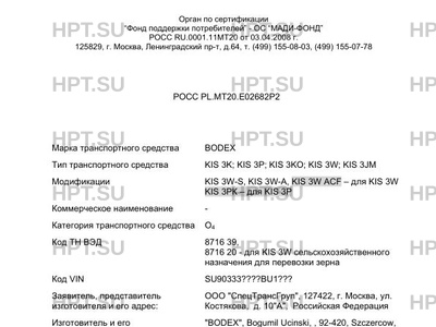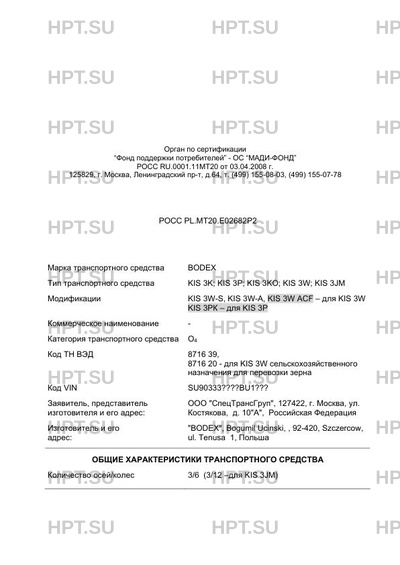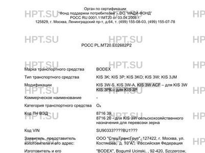 | Тип ТС | KIS 3K; KIS 3P; KIS 3KO; KIS 3W; KIS 3JM |