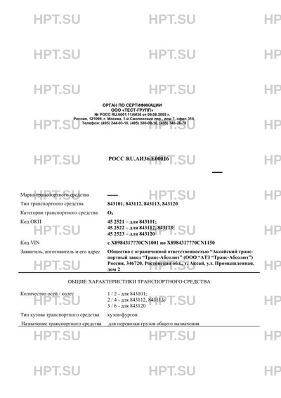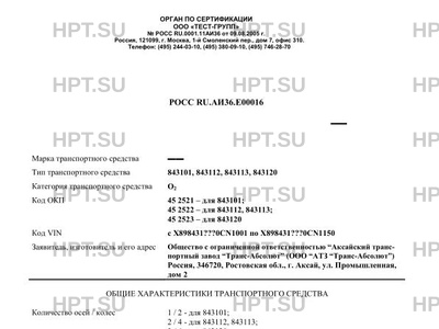 | Тип ТС | 843101, 843112, 843113, 843120 |
