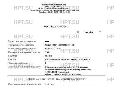| Тип ТС | 363226 (АЦ-7-40(43118) 03Г-ТВ) |