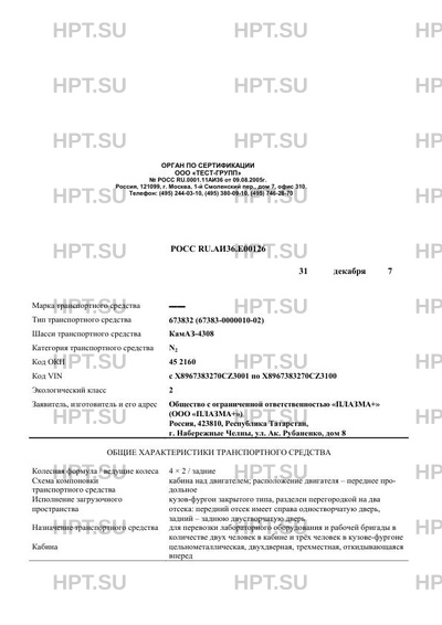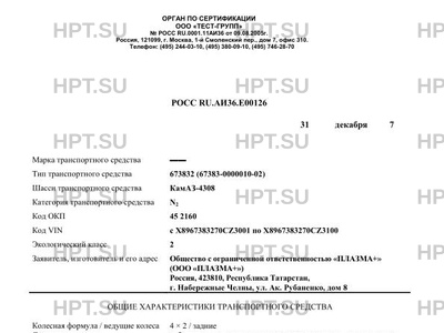 | Код VIN | с Х8967383270СZ3001 по Х8967383270СZ3100 |