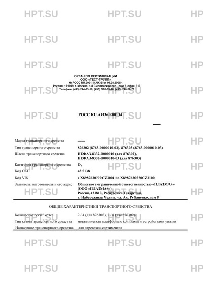| Базовое ТС / Шасси | НЕФАЗ-8332-0000010 (для 876302), НЕФАЗ-8332-0000010-03 (для 876303) |