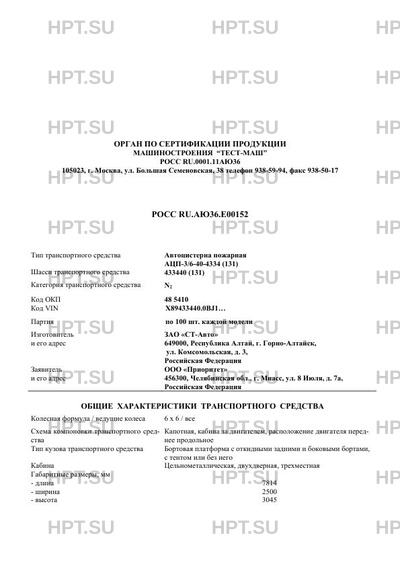 Марка ТС Автоцистерна пожарная АЦП-3/6-40-4334 (131)