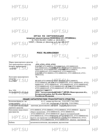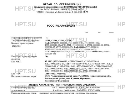 Коммерческое наименование 4753, 47531, 47532, 47533 на базе шасси ГАЗ-3307 (4753-0000010, 4753-0000010-01…