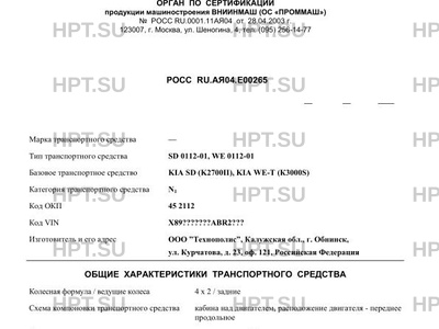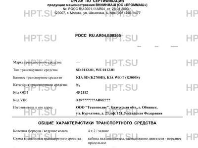 | Коммерческое наименование | SD 0112-01, WE 0112-01 на базе шасси KIA SD (K2700II), KIA WE-T (К3000S) |