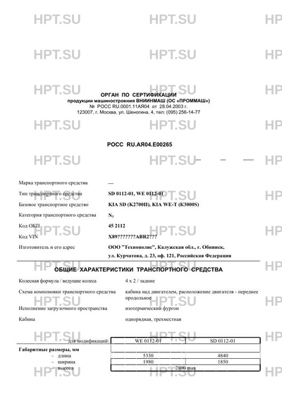 | Базовое ТС / Шасси | KIA SD (K2700II), KIA WE-T (К3000S) |