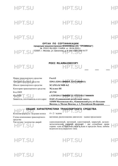 | Предприятие-изготовитель | ОАО "Голицынский автобусный завод", 143050 Московская обл., Одинцовский р-н, п/о Большие Вяземы, д. Малые Вяземы, д. 1, Российская Федерация |