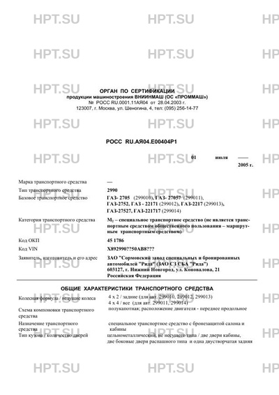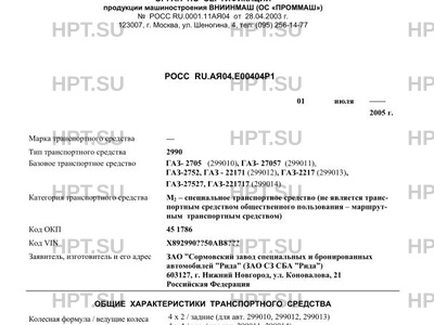 Коммерческое наименование 2990; Базовое транспортное средство: ГАЗ- 2705 (299010), ГАЗ- 27057 (299011)…